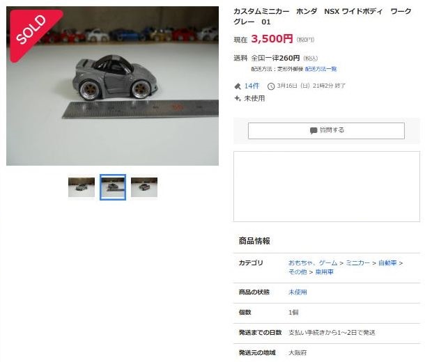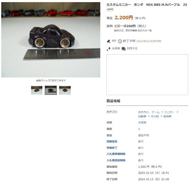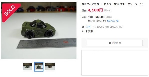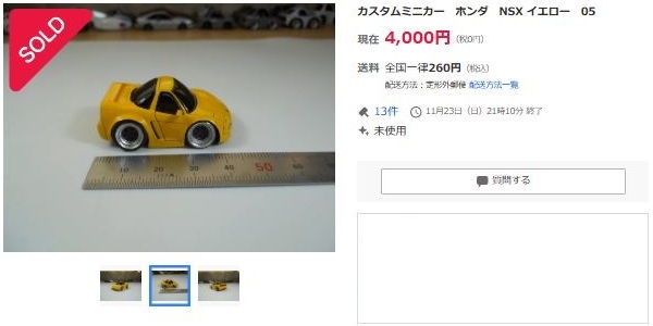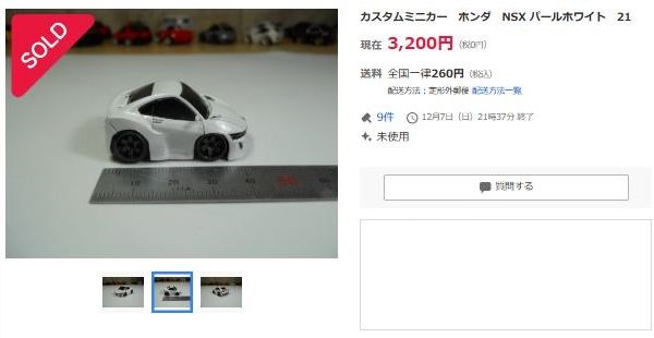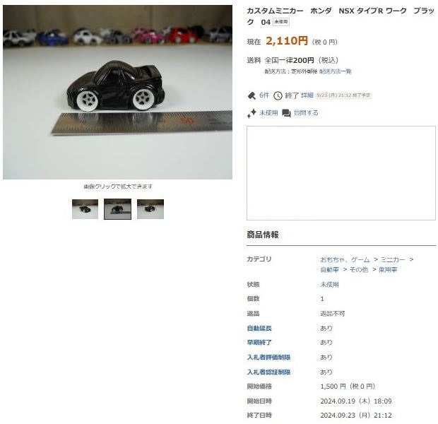その中にNSXは6種あり、すべて落札されたのですが、そのうち4種は開始価格の1,500円で終了し