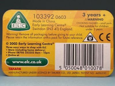 | リアナンバー部のステッカーNo.59。タイヤ無刻印。別に所有しているブリスターパック入りも 別カウントしている。中国製。 | プルバックエンジンの配色が左右逆、後輪の車軸をカバーするギアが、通常の白色ではなく水色になっている(画像左・右は後期版@)。 | ||