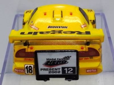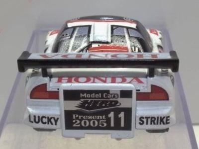 | 2001年12月発売。10台入でNSXはMobil1が1台のみ。グリッドシートとウエイトハンデシール付き。 | 2001年12月発売の限定版 クリアボディ。福袋形式の8車種の中の1台。 | ||